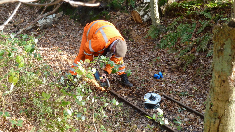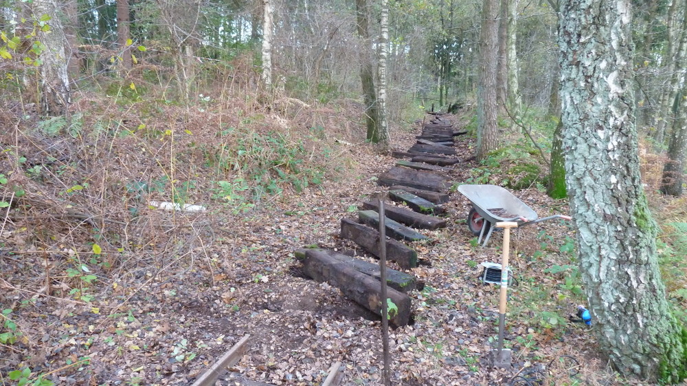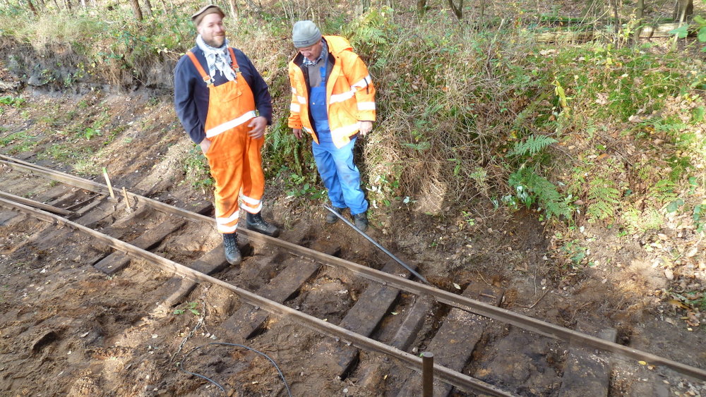 Der heutige Tag begann mit Arbeiten an einer Strecke die schon lange besteht und fertig ist. Hier fehlten nur noch die Nägel. Dieses Stück wurde nun endlich fertig gestellt und dabei auch gleich optisch herausgeputzt: